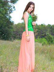 New model Bernie strips in the wheat field as she bares her delectable body.