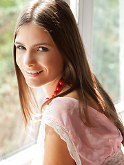 Cute and charmin Nancy A in smiling sweetly in her lingerie