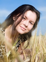 New model Bernie strips in the wheat field as she bares her delectable body.