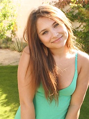 Hottie Misty Anderson gives us a charming little outside show as she strips out of her sexy Aziani tank and shorts. Eventually she finds her way out to show off her amazing hard body.