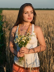 Alessandra A shows off her magnificent body in a field of flowers