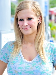 Beautiful teen chick taking off sexy black panties and spreading her slim legs on the seaside.