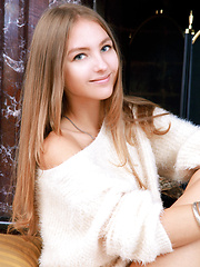 Adorable Nastya K posing in white knitted top