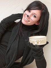 Frisky little kitty Catie Minx drives herself up the wall