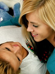 Cute lesbian hair brushing teens fingering tight pussies