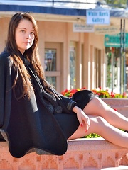 Horny sweet Nikki Brooks strips her pink, skinny jeans spreading her snatch on the window