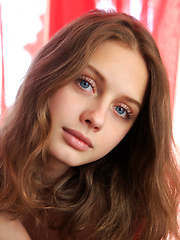 Rosett undresses her red kaftan dress, revealing a pair of small yet exquisitely pink and puffy breast, pink pussy with a cute trimmed bush, and smoot